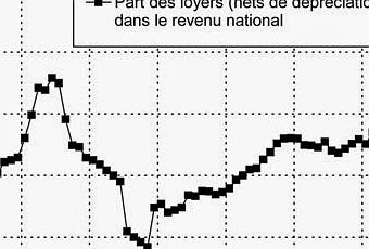 Un autre graphique est intéressant, celui qui montre la progression de la part des loyers dans le revenu national en France : ils ne représentaient que 2% en 1950, contre 10% en 2010.Chaque Français travaille de plus en plus pour payer son loyer, ou pour posséder son appartement. Ceci vient d’être confirmé par les statistiques que l’INSEE a publié sur la consommation des ménages : en 2013, les dépenses de logement représentent plus de 20% de la consommation effective des ménages, contre 18% 10 ans plus tôt. Si l’on ramène cela aux dépenses de consommation des ménages (c’est-à-dire en excluant les dépenses de consommation au service des ménages comme la santé, l’éducation ou l’action sociale), elles représentent 27% en 2013 contre 24 % en 2003.Bien sûr derrière ces évolutions moyennes, se cachent de très grandes dispersions, tant quant à la taille du capital détenu, que sa composition. Thomas Piketty consacre plus de la moitié de son livre à cette analyse, j’y reviendrai dans la troisième partie.Pour l’instant, continuons à mieux comprendre comment globalement le capital se structure en France, et dans le reste du monde.Que dire de la répartition entre capital public et capital privé ?(à suivre)