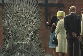 Lors de sa visite à Belfast (Irlande), la reine Elisabeth II a visité les studios de Game of Thrones. Même si elle a été invitée par les producteurs à s’asseoir sur le trône de fer, elle a préféré refuser. En revanche, elle est repartie avec une miniature du symbole de la série. Enfin, elle a eu l’occasion de saluer une bonne partie du casting présent pour l’occasion : Lena Headey (Cersei Lannister), Maisie Williams (Arya Sark), Sophie Turner (Sansa Stark), Kit Harington (Jon Snow), Rose Leslie (Ygritte) et Conleth Hill (Lord Varys).