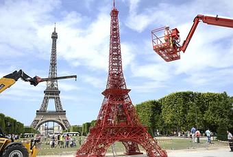 Elle a été réalisée avec des chaises pour une campagne Fermob. Elle mesure 13 mètres de haut et a été réalisée avec 324 chaises.