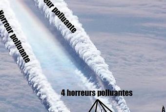Mais ce n’est pas tout. Depuis l’avènement des avions à réaction, la pollution a pris un tour à la fois mondial et éléphantesque : une grande partie des déplacements de ces engins bruyants provoquent des traînées disgracieuses dans le ciel qui, non content de larder l’azur de banderoles fumeuses, ont la fâcheuse manie de favoriser le réchauffement climatique. Oui, vous avez bien lu : les trainées de condensation laissées par les avions dans leur voyage ont un impact sur le réchauffement climatique en augmentant l’effet de serre, c’est comme ça, c’est dit, c’est tout, ne discutez pas.