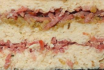 Recouvrir les lardons avec une nouvelle couche de la préparation au poulet, et toujours en tassant bien.