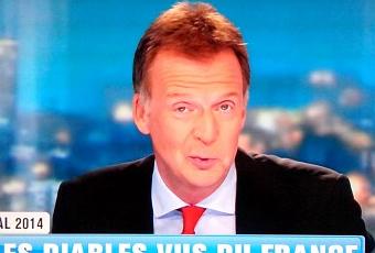 On commence tout d’abord par le traditionnel JT, largement consacré à l’événement. Probablement enthousiaste à l’idée de vivre la rencontre, le chargé aux titres du JT commis une petite bourde en direct, affichant à l’écran « Les Diables vu du France ».