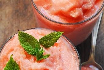 Du coup pour me rafraîchir je commence par le dedans en espérant ainsi un peu vainement que je finirai par donner aussi un coup d'frais à cet environnement hostile et chaleureux qui m'entoure… un peu comme si je devenais un climatiseur sur pattes…Bon ça ne marche pas vraiment, mais c'est pas grave au moins moi comme ça je suis au frais, glace après glace ! Et comme il faut quand même varier un peu les plaisirs en cherchant dans mes archives la recette à remettre en avant je suis tombé sur ce petit plaisir glacé à en faire frétiller de plaisir un pingouin un soir d'été !Glace pastèque vodka et citron vertIngrédients : 500g de chair de pastèque – 12c de vodka – 12cl de sirop de canne – le jus d'un citron vert – 30g de sucre en poudre – 1blanc d'œuf - quelques feuilles de mentheCoupez la chair de pastèque en tout petits cubes. Répartissez le tout dans un grand plat pour que la pastèque ne soit pas trop tassée et mettez-le au congélateur.Mélangez la vodka, le sirop et le jus de citron vert. Versez ce mélange dans un bac à glaçon et direction le congélateur. Pas d'inquiétude si ce mélange ne glace pas totalement, c'est normal.Le lendemain une heure avant de préparer la glace mettez les verres ou les verrines où vous allez versez la glace au congélateur et ne les sortez qu'au dernier moment.Après c'est simple vous mettez le tout dans le bol de votre robot coupe, de votre mixer quoi, ajoutez le blanc d'œuf et le sucre en poudre et mixez le tout jusqu'à obtenir un joli sorbet. N'insistez pas trop !Versez dans les verres, décorez avec quelques feuilles de menthe et dégustez sans attendre.