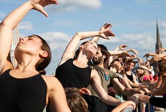 La première avec MEGABARRE dans le cadre de l'Eté Métropolitain. Le miroir d'eau s'est transformé en cours de danse avec le danseur/chorégraphe Thierry Malandain du Centre chorégraphique national de Biarritz. Une session de danse où se mélangeait amateurs et professionnels. Un jolie moment pédagogique et calme !