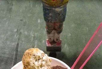 Avant la dégustation elle nous montre le morceau de choix, ... la joue.
