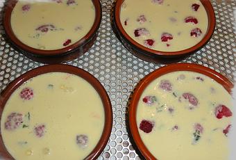Disposer des framboises dans les ramequins et recouvrir avec l'appareil.