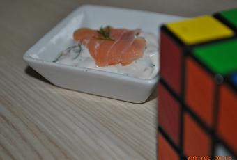 - mélangez le jus de citron, la ricotta, la crème fraîche, les herbes. Vous pouvez poivrez, ajoutez le saumon mais gardez en pour la déco