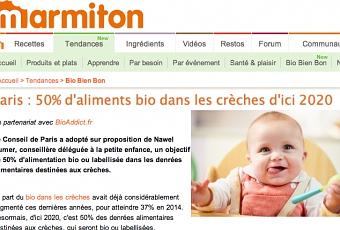 Le site marmiton.org, le plus gros site culinaire en France, qui compte plus de 60 000 recettes de cuisine et plus de 8 millions de visiteurs par mois, vient de lancer sa nouvelle rubrique "Bio Bien Bon" en partenariat avec le journal Bioaddict.fr, leader sur les thématiques liées au bio et à la santé.
