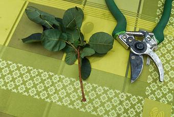 - Enlever les feuilles du bas pour n'en garder qu'une paire ou deux que l'on coupe encore en deux