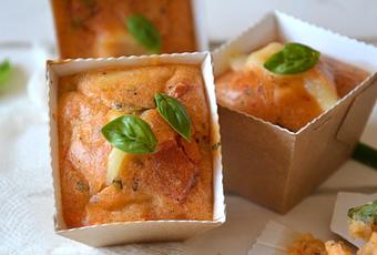 Toutes les saveurs sont conservées dans ces petits gâteaux gourmands. Servis tièdes, la mozzarella est encore fondante ; servis froids, ils sont moelleux à souhait et aucunement lourds.