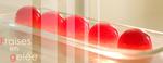 J'ai voulu expérimenter l'agar-agar dans un coulis de fraises. J'ai mixé des fraises fraîches avec du sucre (il faut que ce soit assez sucré). J'ai délayé l'agar-agar dans un peu d'eau froide (il faut compter 4g d'agar-agar pour 1 litre de coulis) puis je l'ai mélangé au coulis. J'ai porté le tout à ébullition et pour finir j'ai versé le coulis dans de petits moules en silicone en forme de demi sphère et j'ai laissé refroidir au frigo.