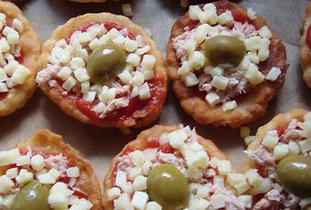 Disposer vos mini pizza sur un plat mettre de la sauce tomate , du thon etc garnir selon vos envies mettre au four quelques minutes a 180 ° jusqu'à ce que le fromage soit fondu