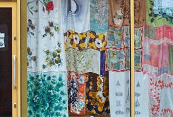 Aujourd'hui je vais vous re-parler d'Emily Chalmers et surtout de sa nouvelle boutiqueJ'aime beaucoup son style, je la suis sur instagram, pinterest et plus / Elle a eu un bébé et a déménagé. Emily a du laissé son merveilleux loft - shop, mais c'est toujours avec beaucoup de goût et d'imagination qu'elle a investit le nouveau lieu, notamment avec ce rideau de foulards.Welcome to Caravan !