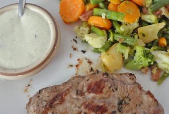 Observation : Un peu perplexe, j'ai essayé cette sauce pour utiliser de la menthe du jardin ... le goût à la petite cuillère n'est pas vraiment top ... mais une fois que l'on trempe le bout de viande dedans, on apprécie ce petit goût de fraîcheur ! Même P'tit Mari a laissé de côté sa moutarde pour venir piocher dans la mini-coupelle, c'est pour dire !!!