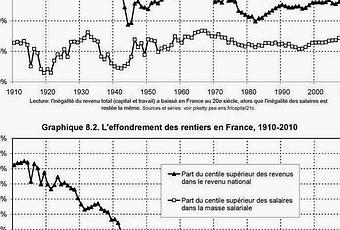 Que s’est-il passé selon Thomas Piketty en matière de réduction des inégalités de revenus ? Beaucoup à cause des guerres, rien à cause d’un processus structurel de compression des inégalités. Telle est une des thèses majeures de son livre : les inégalités perdurent, et même se développent comme nous le verrons plus loin.« Dans une large mesure, la réduction des inégalités au cours du siècle écoulé est le produit chaotique des guerres, et des chocs économiques et politiques qu’elles ont provoqués, et non le produit d’une évolution graduelle, consensuelle et apaisée. Au XXe siècle, ce sont les guerres qui ont fait table rase du passé, et non la paisible rationalité démocratique ou économique. »Cette assertion est loin de faire l’unanimité aux seins des économistes. Comme un de mes amis me disait dernièrement : « Au temps des rois, seuls les nobles pouvaient lire la nuit. Au dix-neuvième siècle, toute la bourgeoisie le pouvait. Aujourd’hui tout le monde. Belle réduction des inégalités, non ? »Il est vrai que l’accès au confort et technologies diverses se diffuse de plus en plus…Sans entrer dans cette polémique entre experts, force est de constater que la tranche où les revenus du capital dominent les revenus du travail ne représente de nos jours que 0,1% des revenus les plus élevés, soit cinq fois moins qu’en 1930, et dix fois moins qu’en 1910.Mais si les inégalités liées au capital se sont réduites, celles liées aux salaires restent, car, comme Thomas Piketty le rappelle, le salariat n’a jamais été un bloc homogène.Thomas Piketty ramasse cela en une formule adroite : « Dans une large mesure, nous sommes passés d’une société de rentiers à une société de cadres. » Et il précise : « C’est-à-dire d’une société où le centile supérieur est massivement dominé par des rentiers (des personnes détenant un patrimoine suffisamment important pour vivre des rentes annuelles produites par ce capital) à une société où le sommet de la hiérarchie des revenus – y compris le centile supérieur – est composé très majoritairement de salariés à haut salaire, de personnes vivant du revenu de leur travail. »(à suivre)