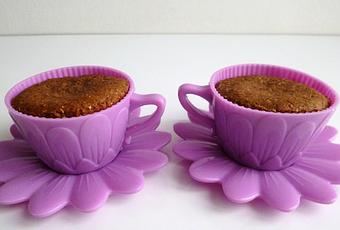 Bien incorporer tous les ingrédients, jusqu'à obtenir une préparation homogène. Répartir la pâte dans les 2 moules tasses en silicone (modèle Daisy Pavonidea FRT181 ) en prenant soin de bien tasser et lisser le dessus.Enfourner à 180° et arrêter la cuisson, dès que le dessus est bien doré.