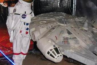 Allez, ce week-end c’est la fête les enfants, je vous emmène à la grande expo Star Wars de Wolfsburg , oui c’est en Allemagne. Pour 10 euros l’entrée, la magie opère tout de suite ! Il y a le Faucon Millenium, un Chewbacca plus vrai que nature, des jouets et pleins d’autres personnages et objets de collection. « Space Expo » s’est déroulée en avril dernier et le moins que l’on puisse dire c’est qu’elle ne brille pas par sa mise en scène. On est scénographe ou on ne l’est pas.