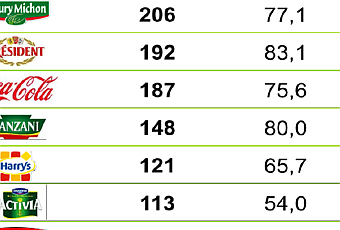 En 2013, Pasquier a cédé sa place à La Laitière. On note cependant que Kantar Worldpanel a, pour cette édition, fait preuve de plus de finesse dans son analyse. En 2012, le paneliste avait appuyé son étude sur les marques ombrelles uniquement, comme Nestlé, Danone ou encore Lu. Il offre cette année une meilleure visibilité sur les marques filles : Activia pour Danone et la Laitière pour Nestlé/Lactalis par exemple. Ceci explique la grande différence de ce classement avec celui que nous avions publié en décembre 2013. Lu et Nestlé ne font donc plus partie du classement français.