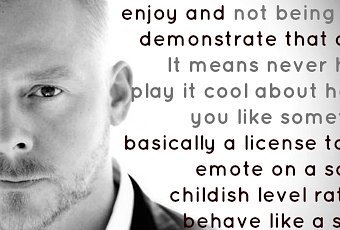 Etre un geek, c’est reconnaître honnêtement ses passions et ne pas avoir peur de le montrer. Ca veut dire ne jamais avoir honte de montrer combien on aime quelque chose. C’est en quelque sorte une permission de s’exprimer avec un cœur d’enfant, plutôt qu’en total adulte. Etre un Geek, c’est extrêmement libérateur.