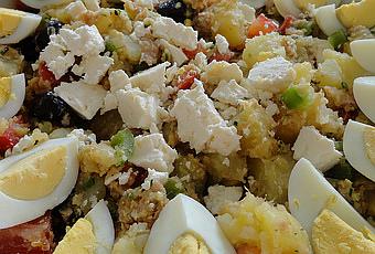 salade pommes de terre, pique nique, sauce cacahuètes, féta, oeufs,olives