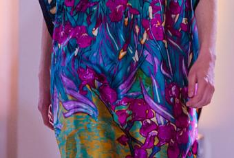 Ces peintures passent aussi par le filtre d’un stand de souvenir à touristes: notre tandem infernal porte des foulards upcyclés, ornés de nuages Van Gogh satinés ou de Nymphéas de Monet en 3D.