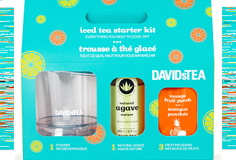 Comme les thés glacés ont la cote cette saison, pourquoi ne pas joindre l’utile à l’agréable en offrant un joli kit du Davids Tea comme trousse à thé glacé?