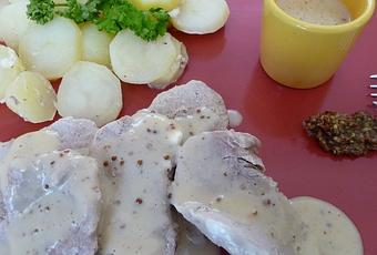 - Mettre dans le bol, le vin blanc, le lait, l'oignon épluché et coupé en deux, l'ail épluché, les moutardes, le demi cube de bouillon, le sel et le poivre.