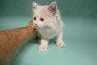 un chaton blanc aux yeux vairons d'à peine 2 mois que nous