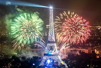 Le 14 juillet, jour de la Fête Nationale française, c’est l’occasion d’assister au grand feu d’artifice populaire donné au Trocadéro ou d’aller danser dans les bals populaires organisés chaque année traditionnellement par les pompiers de Paris.