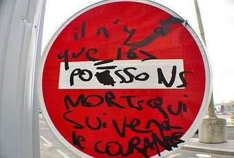 Classé dans:Experimental, France, Graffiti, Paris, Photo Tagged: fish, Graffiti, Il n'y a que les poissons morts qui suivent le courant, mort, panneau, Paris, Photo, poisson, posca, proverbe, Street Art, Tag