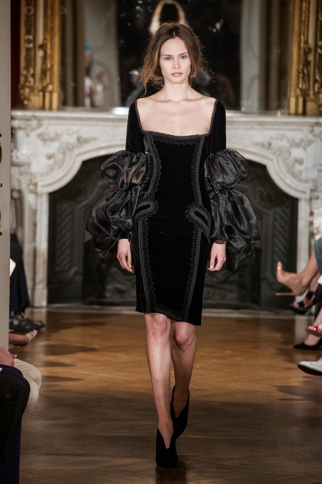 Et quand les hanches ne sont pas exagérées, c'est une allure longiligne qui est privilégiée avec d'élégants fourreaux qui s'habillent de plastrons de mousseline, de dentelle découpée en ombres chinoises et se marient à un velours profond qui attrape joliment la lumière