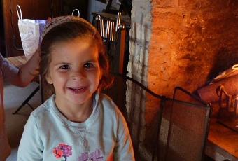 Le bois crépite dans l'âtre, les flammes dansent, chacun vient s'y réchauffer. On explique pourquoi c'est dangereux, on leur montre la fumée qui sort de la cheminée ... Une vraie leçon de choses.
