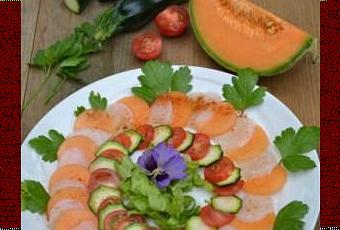 Coupez finement le melon et à l'aide d'un emporte pièce découpez des ronds, découpez en tranche fine les coquilles st Jacques, déposez en rond dans l'assiette, en alternant melon, coquilles st Jacques. Ensuite découpez les tomates cerises en tranche fine, et pareil pour les courgettes. Les déposez joliment sur l'assiette. Disposez au milieu la salade. Pressez le citron au dessus de l'assiette, mettre un filet d'huile. Salez poivrez à votre convenance. Décorez de feuille de persil.