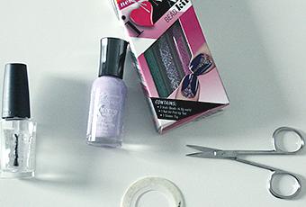 1. On applique les bandes autocollantes de façon à former un triangle sur l’ongle.