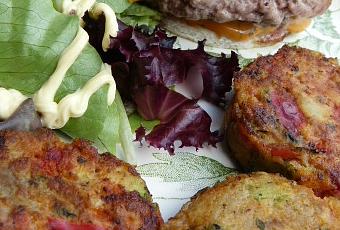 L'accompagnement est constitué ici de petits palets de légumes du soleil surgelés Bonduelle, une bonne manière d'éviter les frites et de composer un repas équilibré.