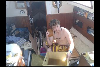 Le dimanche, les ateliers étant fermés, nous trouvons un moyen de passer le temps : shampouiner le bateau et l’annexe. Javel puis Cif ! Ça fonctionne du tonnerre ! Moi en technicien de surface avec le balai brosse et Javel, puis Max en fée du logis avec éponge et Cif ! Une équipe de choc et un pont qui brille de mille feux ! Ensuite on bouquine les bouquins de Pajean, la bible des Glénans, et un petit coup d’internet. J’en profite pour acheter le matériel manquant pour le déploiement des salles informatiques au Sénégal. VSF avait transféré 350 euros sur le compte d’HumaniMer pour que j’effectue ces achats (switch et câblage). Mais avec la mise en place des virements SEPA il faut que j’attende la réception d’un code par courrier postal, ça prends du temps mais on a ce temps, donc tout vas bien. Et j’ai pu, à posteriori, enregistrer mon numéro de portable. Pour d’éventuels prochains virements, je recevrai directement le code sur le téléphone. J’attends un mail de Tiphaine, quand elle recevra le courrier en question, pour finaliser l’achat.