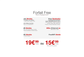 Grâce à cette nouveauté, le forfait Free sans engagement devient incontestablement le plus complet du marché, avec les appels illimités depuis la France métropolitaine vers les mobiles des DOM, USA, Canada, Chine ainsi que vers les fixes de 100 destinations, les SMS/MMS illimités, ou encore 20Go d’Internet en 4G (débit réduit au-delà).