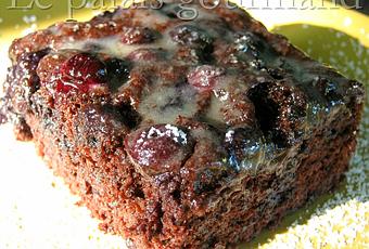Ou plutôt gâteau chocolat et bleuets car la texture, contrairement à ce que je m'attendais, est celle d'un gâteau. Mais peu importe l'appellation de cette recette, elle est simple à faire et c'est bien bon. Comme d'habitude j'ai sur-cuit légèrement, chose à ne pas faire d'un dessert au chocolat, alors la mie était un peu sec, mais j'ai remédié à ça en faisant des trous un peu partout sur le dessus et en y versant une petite sauce. Au lieu de mettre les bleuets dessus, vous pourriez les ajouter à la pâte et ça serait tout aussi bon....à faire la prochaine fois. J'ai pris ce petit dessert chez, Les douceurs de Genny. 1/3 tasse de beurre ou de margarine