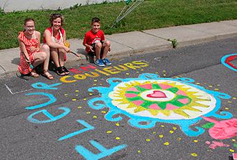 Je participe à l’événement l’Art Rue à Chambly avec les enfants. Quel beau moment à peinturer sur la rue Bourgogne qui s’était transformée en toile géante!