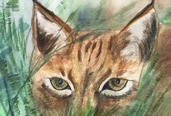 Cet être mystérieux qui hante nos esprits et qui nous attire irrémédiablement vers la forêt est passé à quelques mètres de lui et s’est brièvement offert à son regard… Ce tableau que Fabienne a peint pour notre exposition de photographies en plein air de l’automne 2012 faute d’images a enfin pris corps. Un amoureux de la nature respectueux et admiratif a vécu un rêve éveillé…