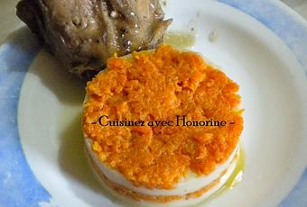 Ce duo de purée accompagnera très bien une viande blanche telle que le lapin. Passons désormais au dressage, munissez vous de cercles pâtissiers. Mettre une couche de purée de pommes de terre, puis une couche de carotte et répétez l'opération. Vous pouvez démouler votre préparation et c'est prêt ! J'espère que cela vous aura plu, à très vite !