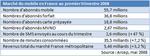 Les revenus enregistrés au premier trimestre 2008 par le marché du mobile en France se sont élevés à 5,46 milliards d’euros, soit une hausse de 3,2 %. L’hexagone compte 55,73 millions d’abonnés mobile, dont 36,8 le sont via un forfait. Le trafic de SMS a cru de 47 % sur le trimestre par rapport à la même période de 2007, et de 17 % par rapport au trimestre précédent. 305.900 numéros ont fait l’objet d’un portage entre opérateurs sur le trimestre.