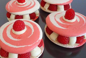 Un délice fondant et onctueux ou la crème très peu sucrée s'équilibre parfaitement avec les coques de macarons et l'acidité des framboises. Que du bonheur !