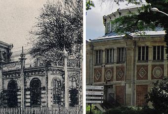 Le bâtiment hispano-mauresque, ancienne buvette à droite a été démolie en 1991 dans le cadre de la rénovation du parc, ce bâtiment avait été réalisé juste un siècle auparavant...