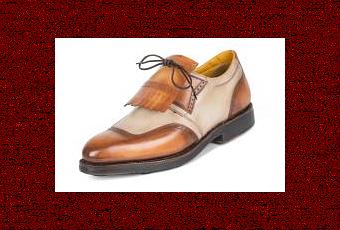 Pour créer ce soulier, Berluti est parti de zéro, façonnant une toute nouvelle forme baptisée St Andrews en l’honneur de la ville écossaise, berceau spirituel du golf. Pour la tige, la Maison a sélectionné le cuir de kangourou, réputé pour sa souplesse et sa résistance. L'élégance s’incarne dans la patine bicolore du soulier, avec ses déclinaisons Osso-Or ou Vermillon-Indigo. Des perforations ornent le soulier, tandis que les lacets sont recouverts d’une languette frangée amovible.