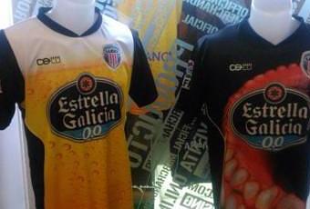 Original pour certains, ridicule pour d'autres. Mais unanimement polémique. Le club Deportivo Lugo, modeste formation de seconde division espagnole, fait les grandes lignes de la presse nationale depuis quelques jours depuis qu'il a dévoilé deux maillots pour le moins étranges pour les rencontres de pré-saison. L’un avec un poulpe, met reconnu de l'autre côté des Pyrénées, et un autre représentant un verre de bière – sans alcool - d’Estrella Galicia, sponsor du club. Si ce choix a le don de surprendre, reconnaissons que le coup marketing est plutôt réussi. Sur les pelouses également puisque l'équipe a remporté sa première rencontre en amical haut la main en étrillant une formation locale (3-0).