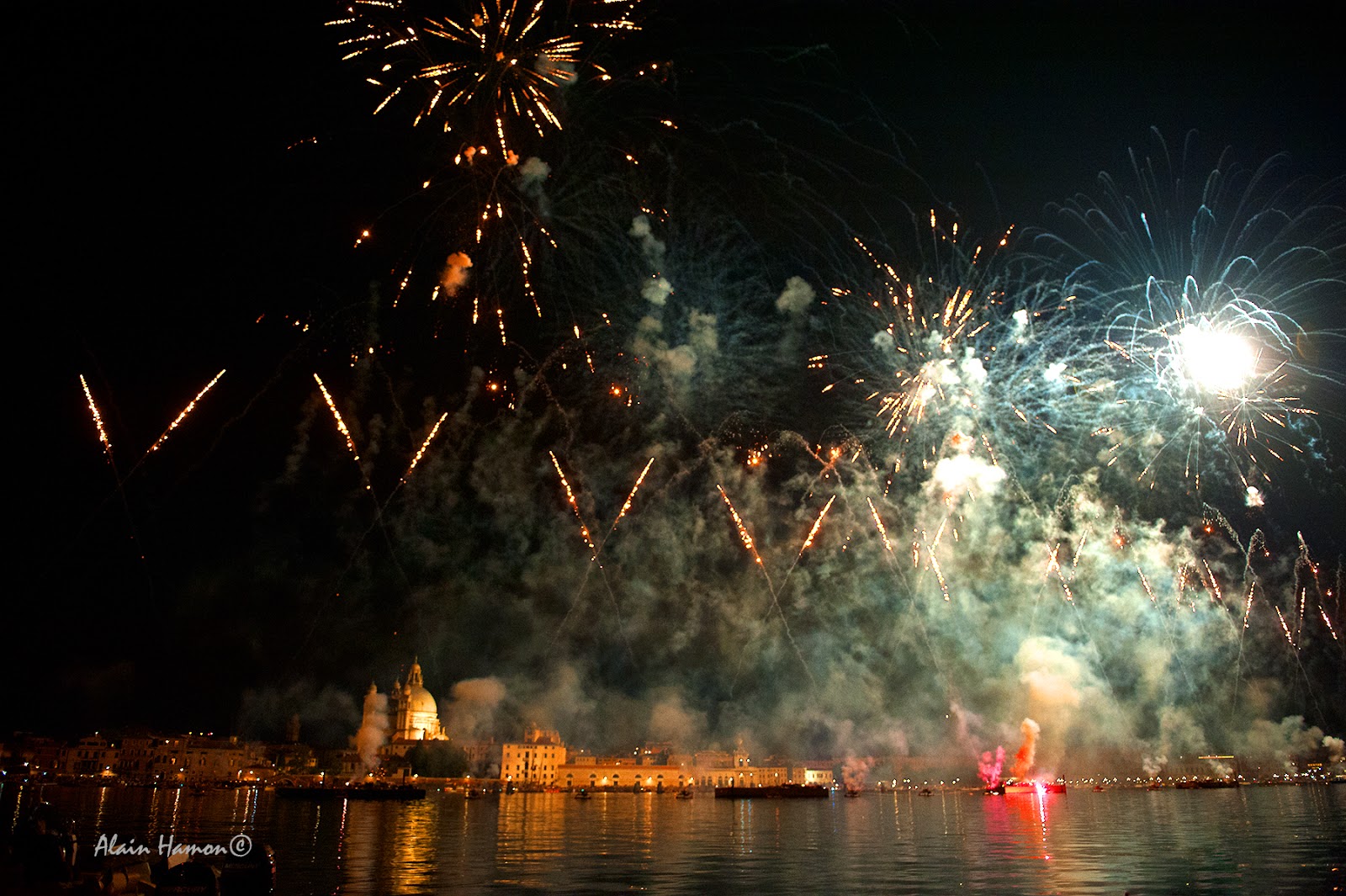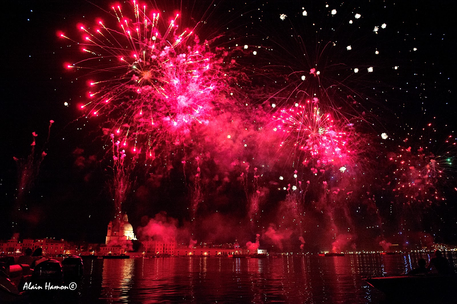 Les gens dansent sur les bateaux, mangent et boivent en attendant le clou du spectacle, le feu d'articice à 23:30, qui dure 45 mn, et qui est l'un des plus beaux du monde. Une fois celui ci terminé, les bateaux remontent le Grand Canal tel un serpent lumineux semblant ininterrompu. Le jour même, une procession a lieu des Zatterre jusqu'à l'église du Rédempteur par un pont provisoire créé pour l'occasion. Une grande messe est célébrée dans l'église du Rédempteur. Un fête inoubliable pour tous!