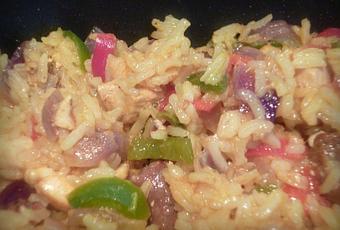 Des fois, le midi il m'arrive de ne pas savoir quoi faire malgrès la multitude de rectte que j'ai a testé. Dans ce cas, je vais dans mon congele et mes placards et je fait selon mon inspiration. Et voilà un riz est super crémeux presque comme un risotto, avec des saveurs orientales. C'est comme cela qu'est né ce plat, je l'ai tellement adoré que j'ai decidé de vous donner la recette.Ce n'étais pas prévu donc la photo n'est pas top mais comme la recette l'est ben la voilà.