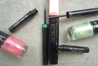 Les vernis dévoilent un effet nacré presque psychédélique sur les ongles, les eyeliners laissent un sillage subtil de paillettes dorée et vert d’eau. Quant au mascara, en plus de faire un regard de velours, il teint les cils en un turquoise discret très élégant… So chic !