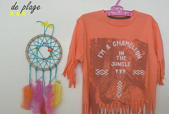Et si vous regardez le tuto jusqu'au bout, il y a même un bandeau d'indienne assorti, réalisé avec les chutes du tee-shirt!
